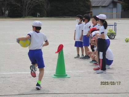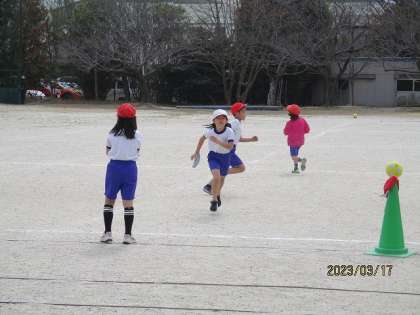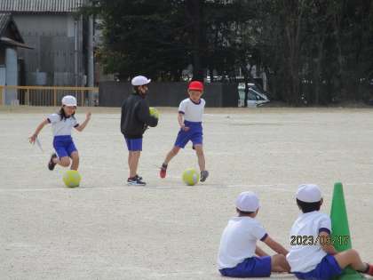 2年生が、サッカーボールを使った少人数チームでの対戦をしていました。