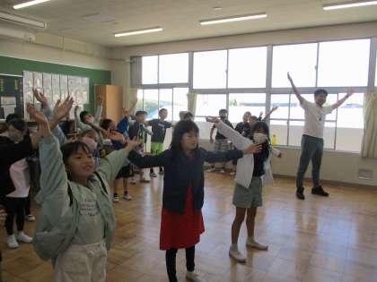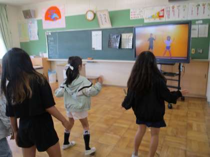 今日の4年1組の鬼北タイムは、ダンスの練習でした。ハンドクラップダンスの映像を見ながら踊りました。
