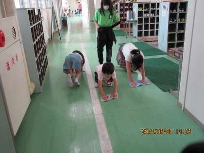 6年生のお兄さんお姉さんの助けを借りながら、1年生も、毎日お掃除をがんばっています。