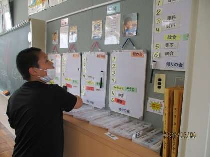連絡帳を机に出したり、今日の予定を確認したり、自分たちでできることが増えてきました。