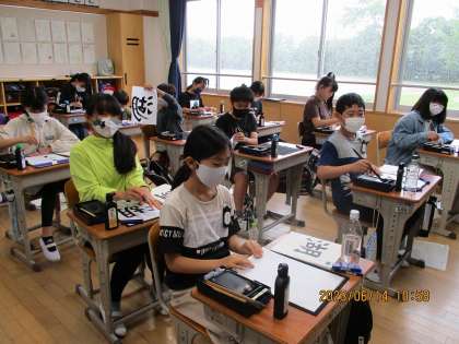 6年1組は、書写をやっていました。