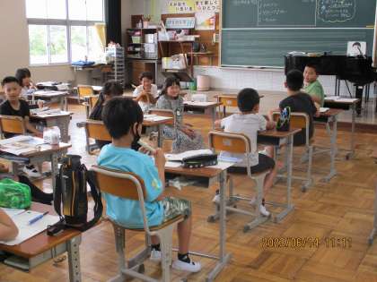 4年生が、「エーデルワイス」の曲のリコーダーテストを行っていました。