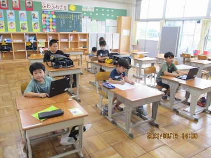 タブレットを使って復習をしている子、タイピングに挑戦している子。