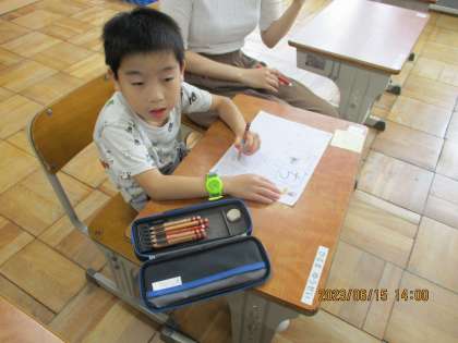 プリントでひらがな練習をしている子。テストに挑戦している子。