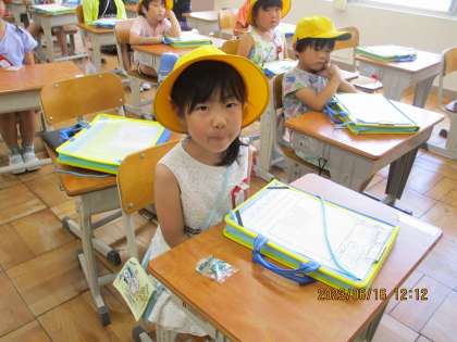1年生は、お話を聞くとき「口を閉じて、よい姿勢で、話している人の方を見る」というルールを守ることをがんばっています。