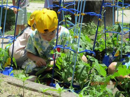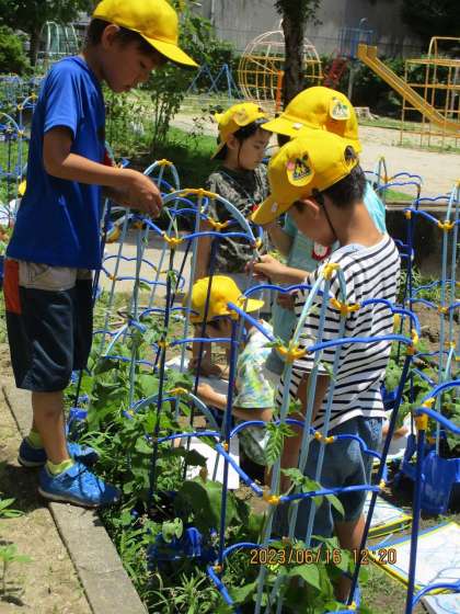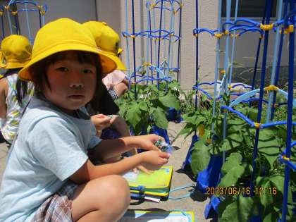 あさがおの近くには置かず、土の所に置くという約束を守りながら、白い玉を上手に置いていました。