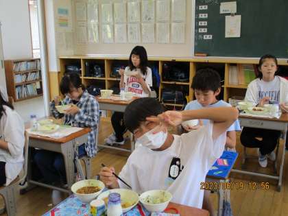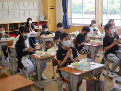 写真は6年1組の教室です。「いただきます!」