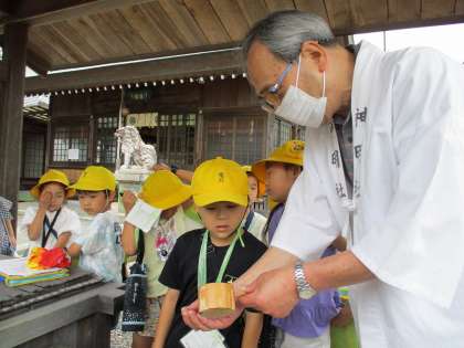 Cコースは神明社と西ノ口の交番を見学させていただきました。神明社では手の洗い方、交番ではパトカーの中まで勉強させて頂きました。ありがとうございました。