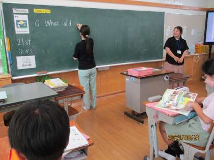 6年生のみなさん、写真の板書の空欄には、どんな単語が入るか分かったかな?