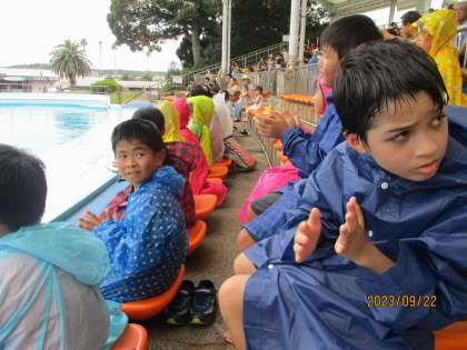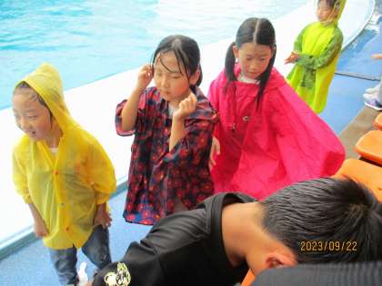 びしょぬれイルカショーでは、前の方でびしょぬれになっていた子がたくさんいました。