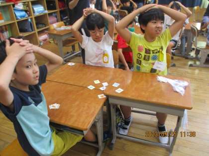 教室ではあちこちから「イエ〜イ!」と歓声があがっていました。