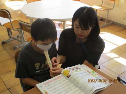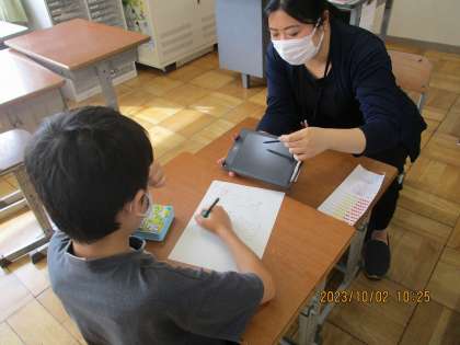 1枚目は、日本語の先生と一緒に、カタカナを書く練習をしています。