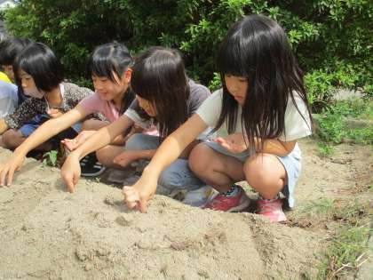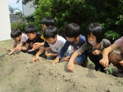 2年2組がダイコンの種まきをしました。