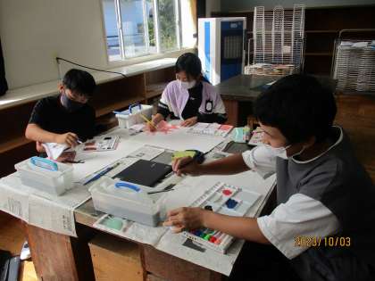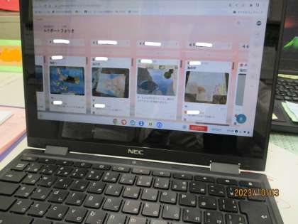この単元の成果として、完成した作品を撮影し、「Padlet(パドレット)」に投稿しました。クラスみんなが、それぞれの作品のよさを共有できるポートフォリオです。
