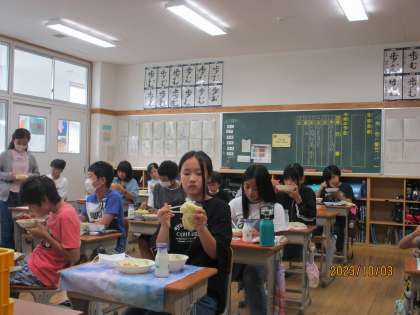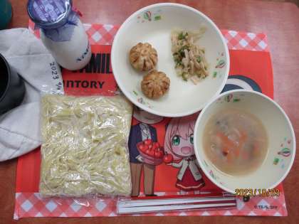 今日は、とんこつラーメン!たけのこ、きくらげ、もやし、にんじん、ねぎ…と歯ごたえのよい野菜がたくさん入っていて、とてもおいしいスープでした。