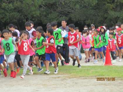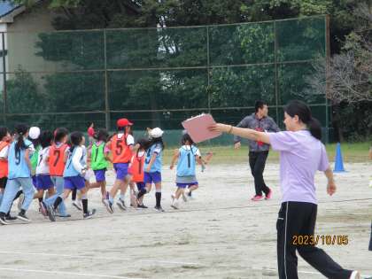 各学年の代表選手たちが大放課に集まり、リレーの練習をしました。