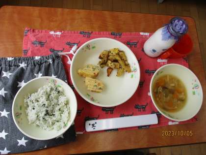 わかめごはんも、あまい大学芋も子どもたちの大好きな味。