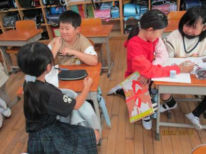 友だち同士で、「あなたのよいところ」「あなたらしさ」を伝える活動をしていました。