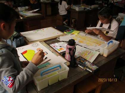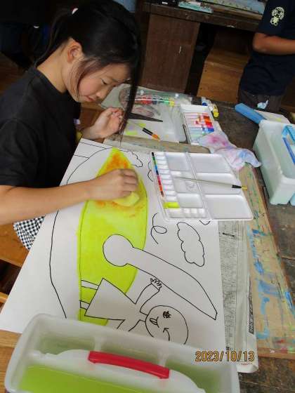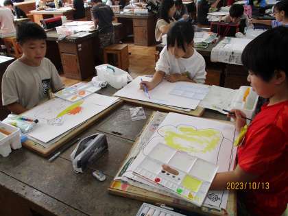 自分なりの感性で、色、形、構図を考え、表現している作品。