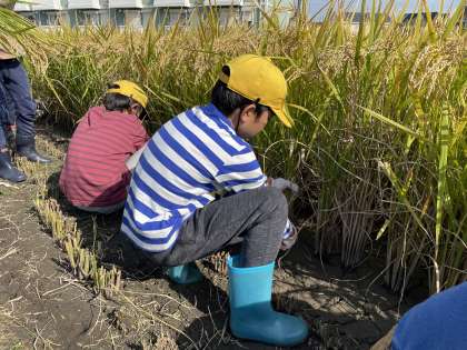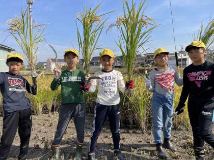 自分たちで植えた稲が育ち,稲を刈ることができました。