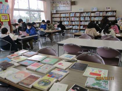 今日は図書館にあるたくさんの詩の本から、気になる本を見つける活動をしました。