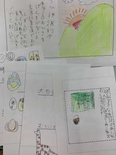 今日は、いくつかの詩から、自分のお気に入りの詩を選び、カードに書きました。友達におすすめする理由をメッセージに書いてカードを仕上げました。