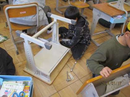 環境委員会の高学年が、低学年の机・椅子の高さ調整をしてくれました。