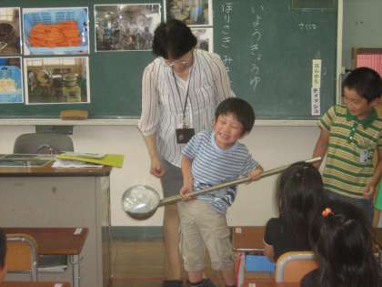6月29日(火)の4時間目に栄養教諭・堀崎先生による食育指導が1年1組で行われました。