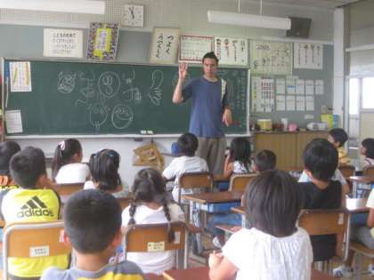 今日はALTのティモシー先生が英語の授業をしてくれました。あいさつの仕方や数の数え方を教えていただきました。