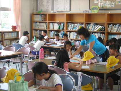 学校の図書館でも,多くの子が集まって自主学習会を行っています。