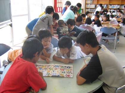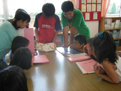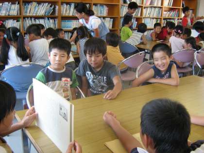 そんな中、3日(金)の5時間目に6年生のお兄さん・お姉さんが涼しい図書館で、読み聞かせをしてくれました。