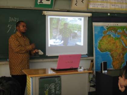 総合「世界を見つめよう」の学習で,コンゴ民主共和国出身のダディさんにコンゴの子どもたちの生活や学校の様子についてお話を聞きました。日本の生活とは違うことがたくさんあって,いろいろなことにびっくりしました。コンゴの国の子どもたちは,10人に2人ぐらいしか学校に行けないと聞き,日本の子どもたちは恵まれていると感じたようでした。たくさんのお話を聞くことができ,有意義な時間になりました。