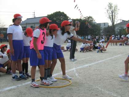 足なみそろえてレッツゴーでは4年生と肩を組み一生懸命走りました。待っているみんなからは「がんばれー」とすばらしい応援が聞こえてきました。