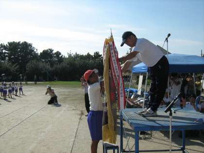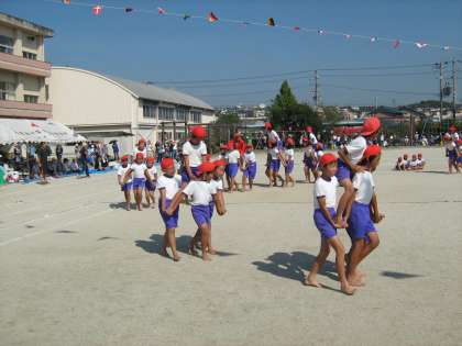 高学年ならではの競技,騎馬戦。迫力の戦いになりました。大将戦を残して2−0で勝っていた白組でしたが,大将騎馬が勇敢に相手の陣地へ・・・。結果は,引き分けに終わりましたが,その戦いぶりはとても立派でした。
