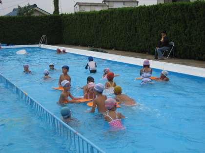 プール開放をしました。くもっていて,少し肌寒い感じでしたが,参加した児童40数名は,元気いっぱいで,楽しく遊んでいました。