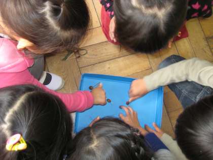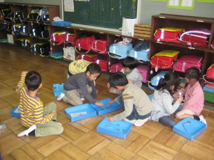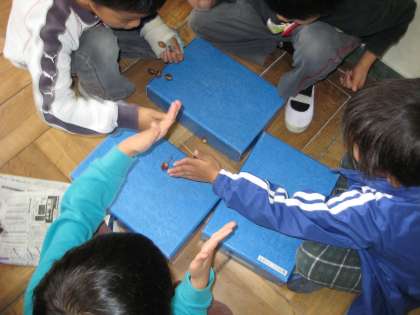 みんなでドングリごまを回してあそびました。