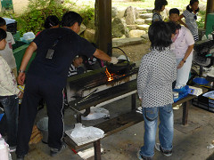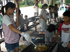 カレー作りの様子です。保護者の方々との練習を生かし,おいしいカレーを作ることができました。