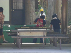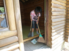 3日目の朝は,朝食後にバンガローやかまど,トイレなどのそうじをしました。「来た時よりも美しく」をモットーに,熱心にそうじをすることができました。