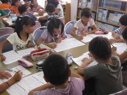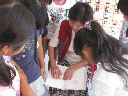 福祉実践教室で、点字の打ち方を学習しました。6つの点の組み合わせで、点字ができることを知りました。「鬼崎北小学校」という学校名や各自の名前を点字で打つことができました。最後に、しおりのおみやげもいただきました。点字サークルのみなさん、本当にありがとうございました。