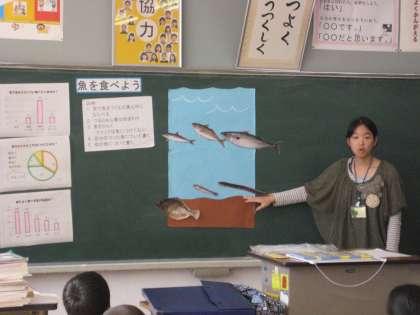 栄養教諭の方が「魚を食べよう」の授業をしてくださいました。一人一匹ずつ魚を釣ってその魚のことを知りました。魚は,ほぼ毎日学校給食に出されていることも知りました。