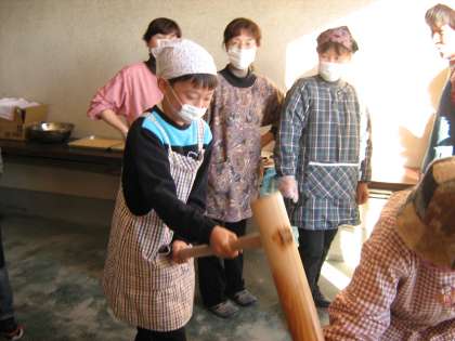 6月から育ててきたお米でもちつきをしました。きねとうすを用意していただき、全員で10回ずつつきました。中村さん、山下さん、JAの方、女性部の方々に協力していただきました。ありがとうございました。つきたてのもちは、やわらかく、みんな何度もおかわりをするくらい、おいしかったです。