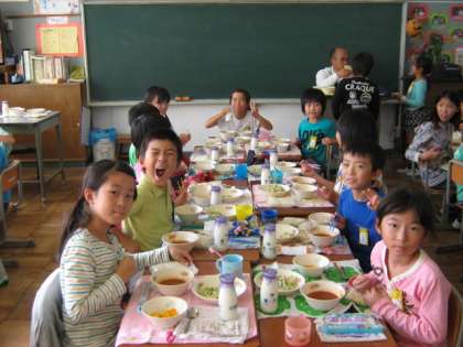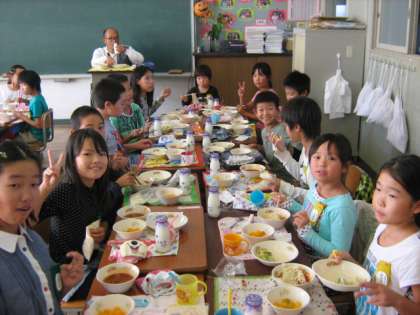 縦割りグループの4年生と一緒に給食を食べました。クラスでそれぞれ3年生の教室、4年生の教室と別れ、楽しく会食しました。配膳も4年生と一緒だと早くできました。仲良く話す声があちこちで聞こえました。