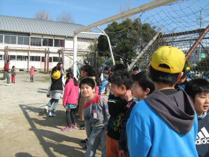 大放課に2年生と5年生でペア遊びを行いました。運動場でどろけいをしている子が多く,みんな楽しそうでした。5年生は2年生を気づかいながら遊び,2年生は5年生を頼りにしている様子が見られ,ほほえましく感じました。