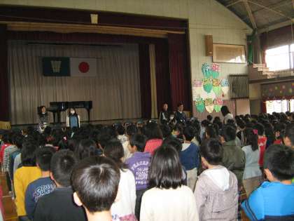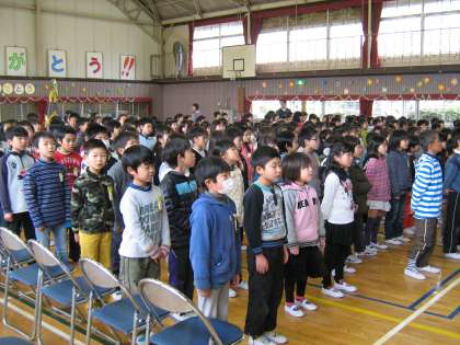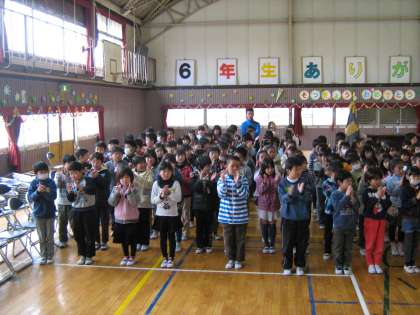 明日のお別れ式の練習をしました。この中では、最高学年です。呼びかけの声も大きく、みんなを引っ張っていくことができていました。「ビリーブ」の歌は、気持ちを込めて歌えました。明日で6年生ともお別れです。