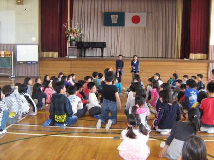 学年便りのタイトル「チャレンジャー」にちなみ,「何事にもチャレンジしよう。」「先生たちも一緒にがんばるよ。」と話しました。目と体と心で話を聞いていて,すばらしい4年生の子どもたちです。
