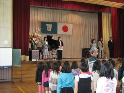 離任式があり、鬼北小を去られる先生方とお別れをしました。涙を誘う場面もあり、感動的な離任式でした。