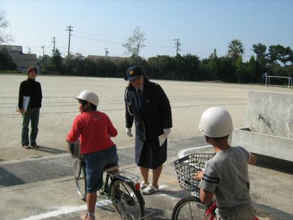 3年生は、10月18日に、自転車訓練を行いました。後方確認・左右確認を警察の方に教えていただきました。みんな上手に乗れるようになりました。