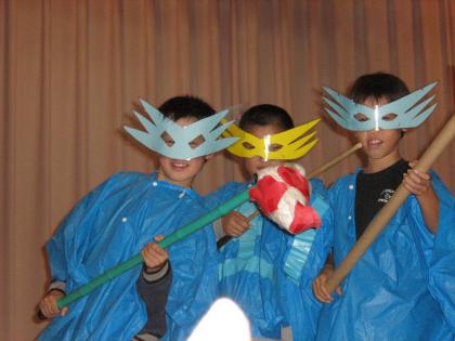 給食後の「染め出し点検」に現れ みがき残しをチェックしたり