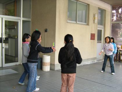 そのほか,足でリフティングしたり,円になって手で打ち合ったりといろいろな遊び方もあるそうです。教室などの狭いスペースでもできます。