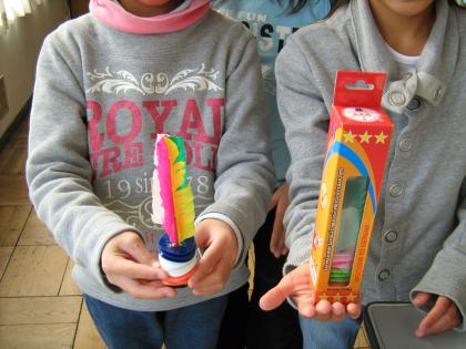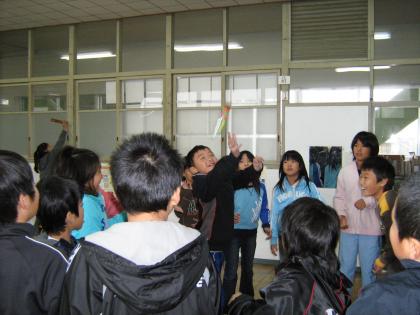 先日のセントレアへの社会見学で,ベトナムの方にもらったおみやげを使った遊び「ダッ・カウ」。